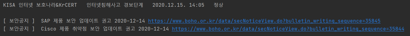 → KISA 인터넷 보호나라 웹사이트에 접속 후 메인 페이지 정보를 가져옵니다.
