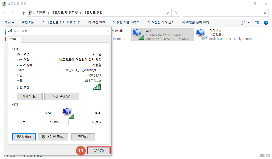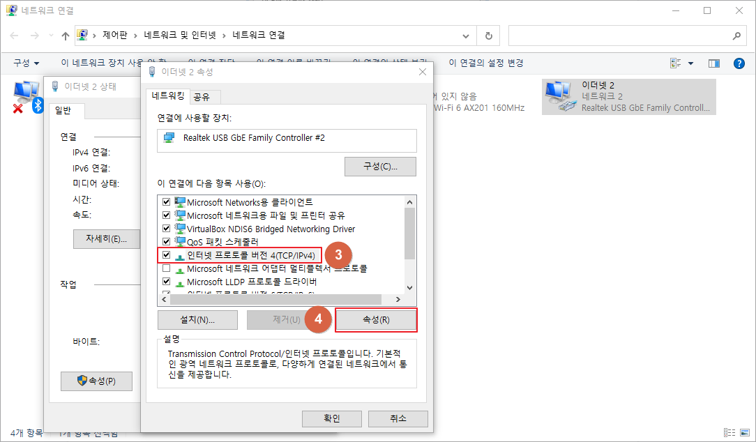 ▷ PC 네트워크를 설정하기 위해서는 "네트워크 연결" 화면에서 설정을 해야 하는데, 해당 화면 이동은 이전 포스팅을 참고하기 바랍니다.