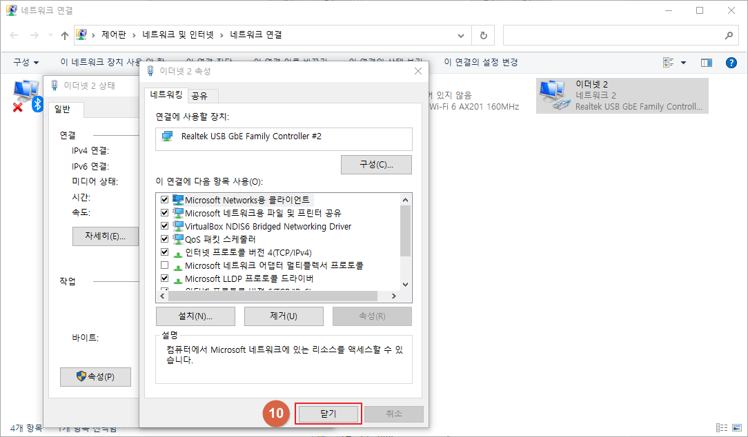 ▷ 유선 네트워크를 1순위로 설정하는 방법은 아래와 같이 설정하면 됩니다.