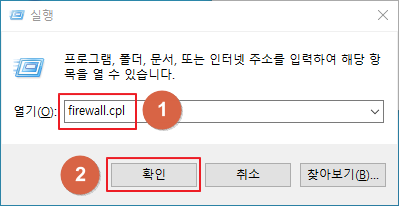 → "윈도우즈키 + R"로 실행창 활성 후 "firewall.cpl" 실행 명령어를 입력하여 "방화벽 설정"으로 이동 합니다.