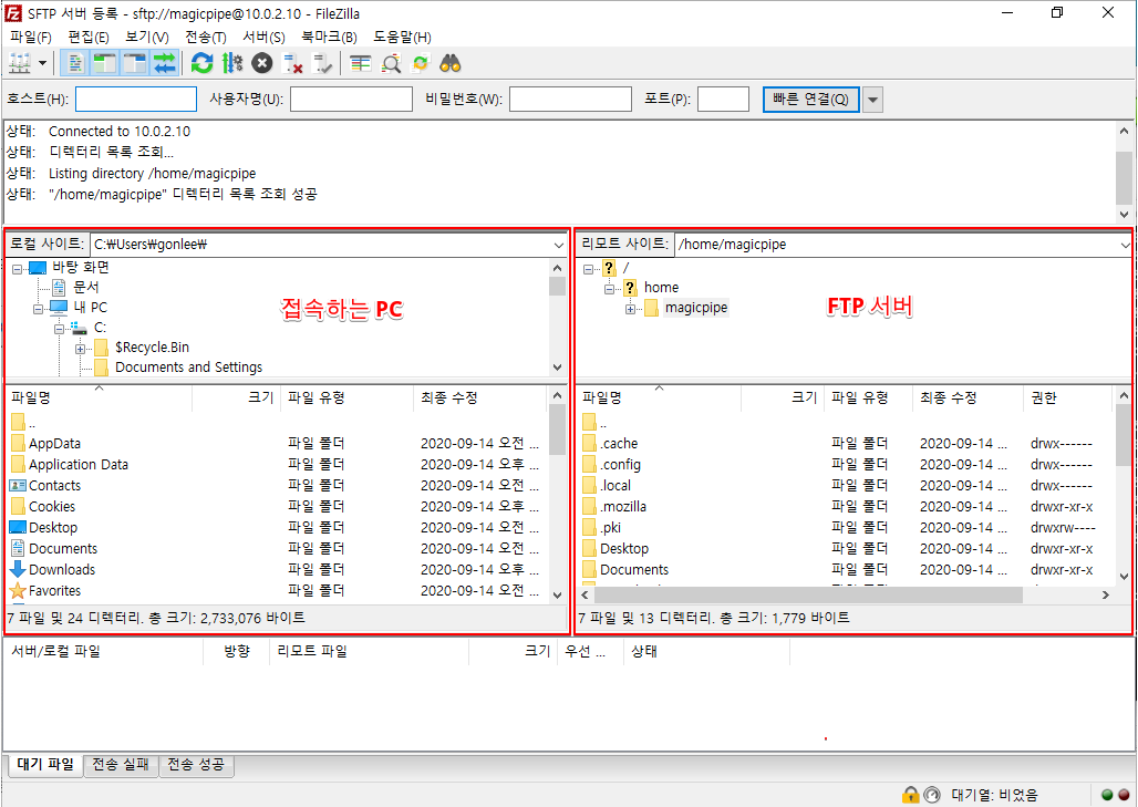 2. SFTP를 이용한 리눅스 서버 접속 방법