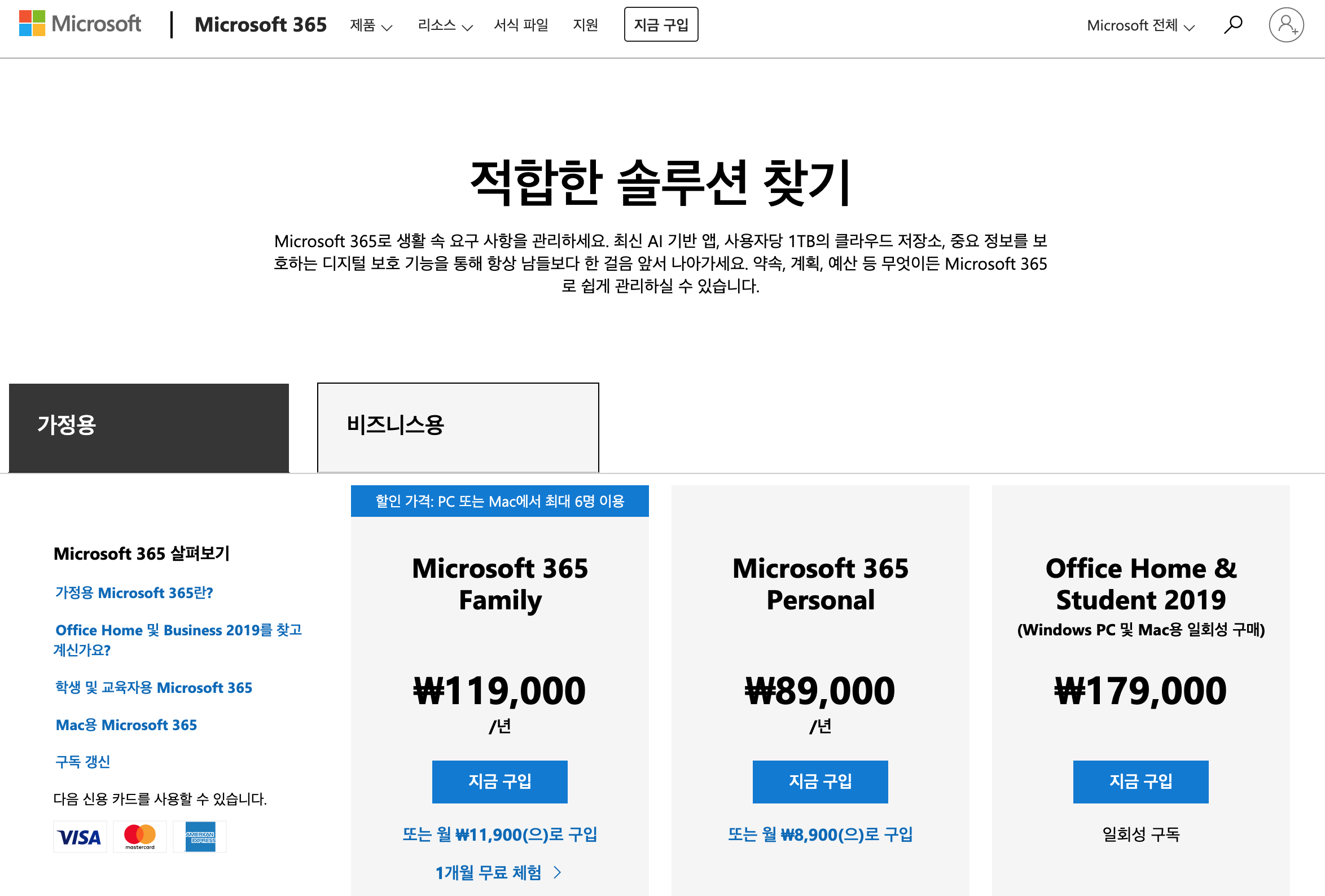 따라서 MS에서는 안정적인 서비스 제공과 다양한 사이버 위협에 보호가 가능한 상위 버전인 MS 오피스 365 가입을 하여 사용 안내를 하고 있습니다. 가격은 사용자마다 느끼는 가격이 부담스러울 수 있으나, 안전한 정품을 사용하는 것이 보안 목적상 좋습니다.