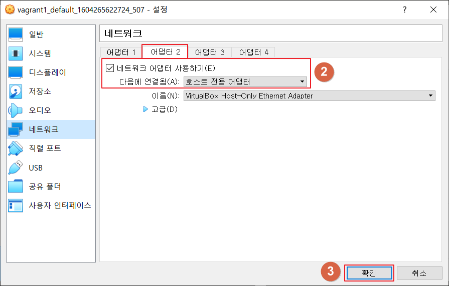 → 2번 네트워크 어댑터 : 호스트 전용 어댑터