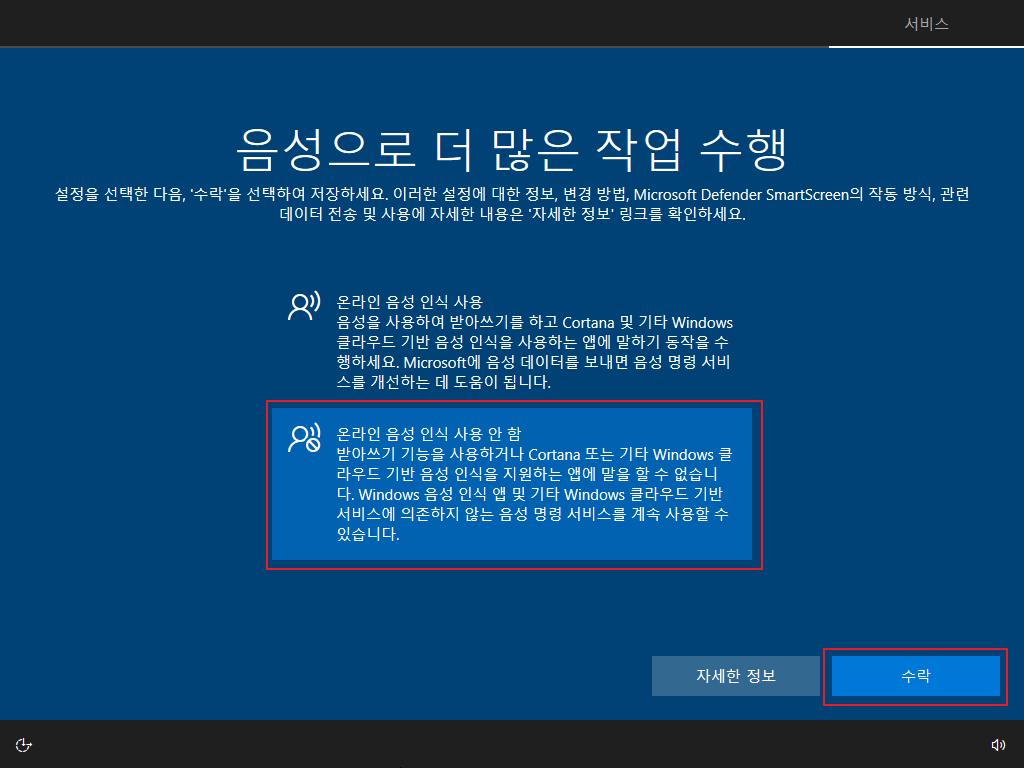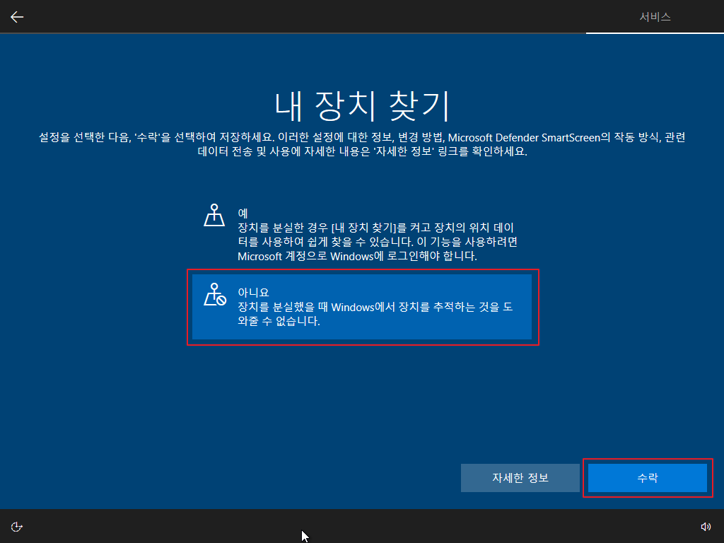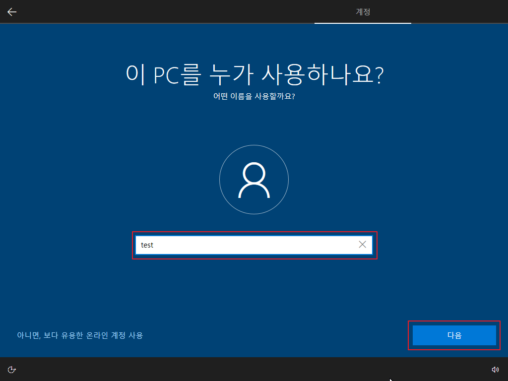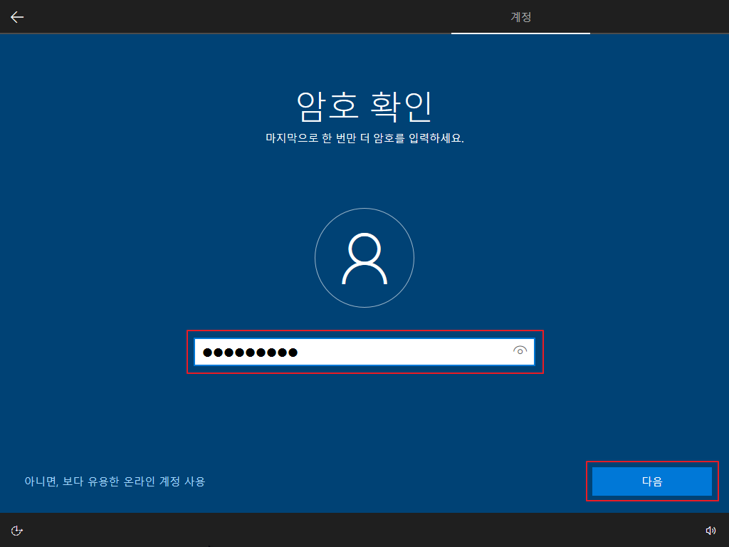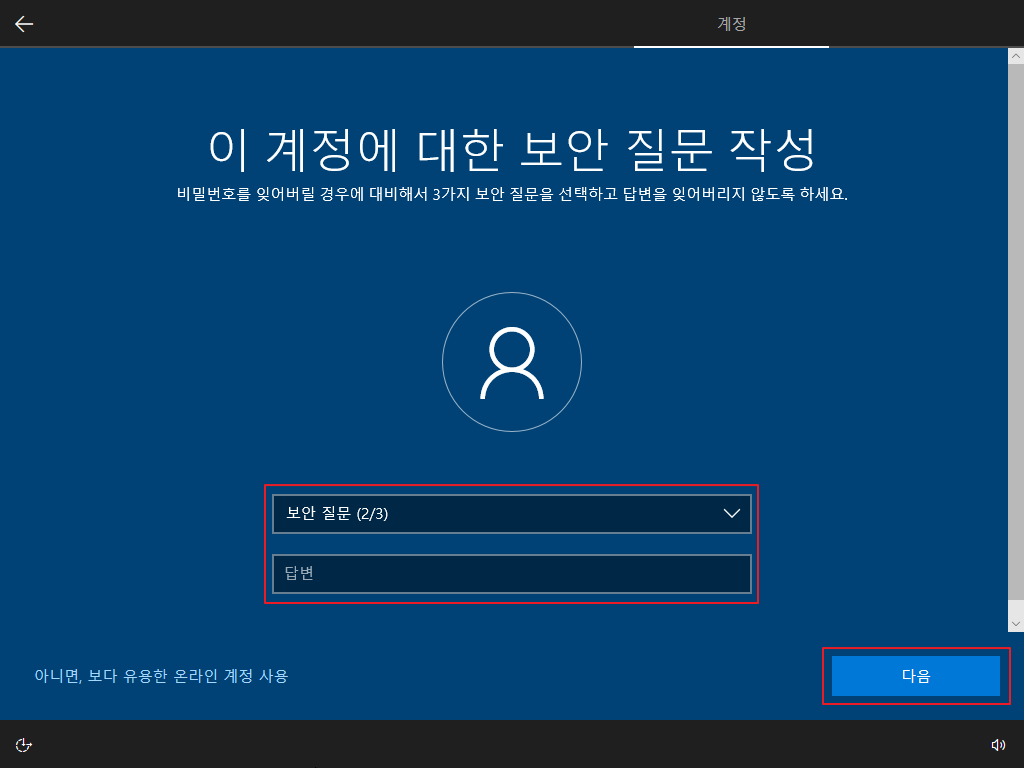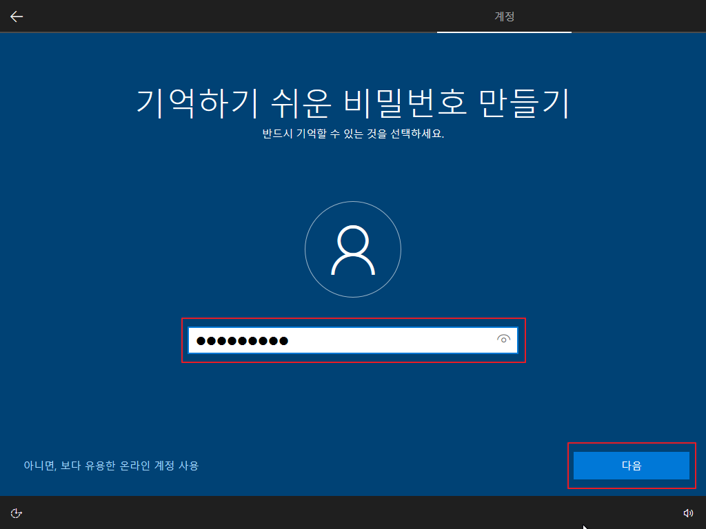 ▷ 재부팅 후 Windows 10 사용자 설정이 나오며, 아래와 같이 설정을 하면 됩니다. (사용자 설정은 개인 사용 환경에 대한 설정이므로 본 포스팅의 내용을 참고하여 사용자 환경에 맞게 설정하기 바랍니다.)