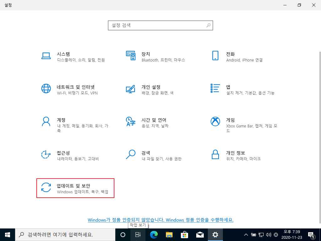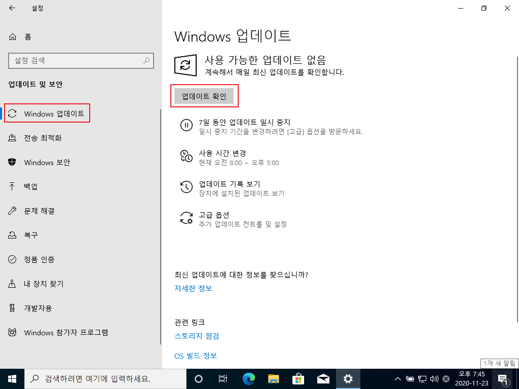 → [설정] - [업데이트 및 보안] - [Windows 업데이트]