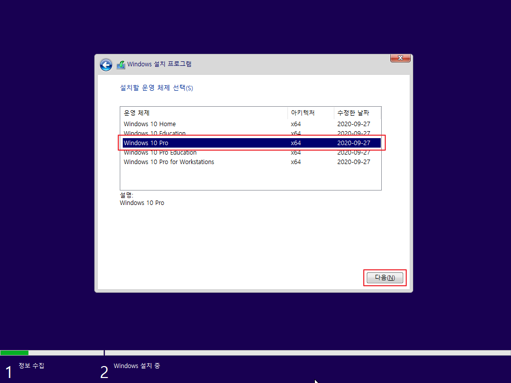 → 보유 중인 라이선스 버전에 맞게 운영 체제를 선택하면 됩니다. 본 포스팅에서는 Windows 10 Pro 버전으로 설치를 진행 하였습니다.