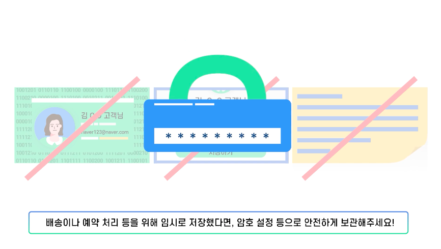 → 배송이나 예약 처리 등을 위해 임시로 저장했다면, 암호 설정 등으로 안전하게 보관해주세요.