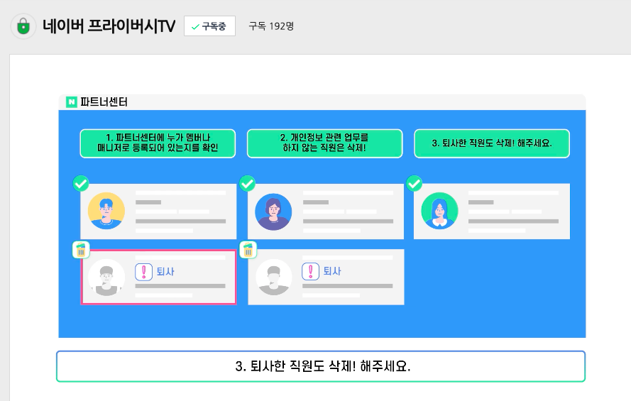 → 파트너센터에 등록된 멤버나 매니저 확인 => 개인정보와 무관한 직원은 삭제 => 퇴사한 직원도 삭제 : 매월 3개 항목 주기적인 확인