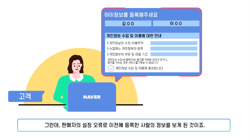 → 판매자의 설정 오류로 구매평이나 게시판 등에 이전에 등록한 사람의 정보가 노출되는 경우가 있는데요. 개인정보를 수집하거나 이용할 때에는 늘 주의해야 합니다.
