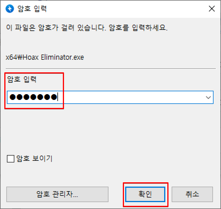 ▷ 위의 다운로드 링크에서 최신 버전을 다운로드 받은 후 반디집으로 압축을 해제합니다. 압축 해제시 패스워드를 입력하는데, 패스워드는 다운로드 링크 본문에 있으니, 참고하여 압축 해제를 합니다.