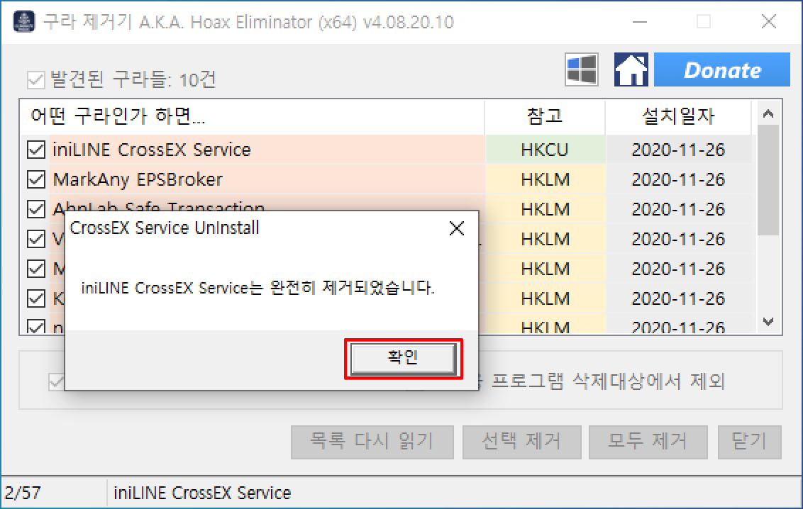 ▷ 사용 방법은 정말 간단합니다. 아래 그림과 같이 "모두 제거" 버튼을 눌러주면 삭제하려는 보안 프로그램 삭제 안내창이 나오며, 삭제 안내에 따른 "확인"버튼을 계속 눌러주면 됩니다. 정말 쉽네요!