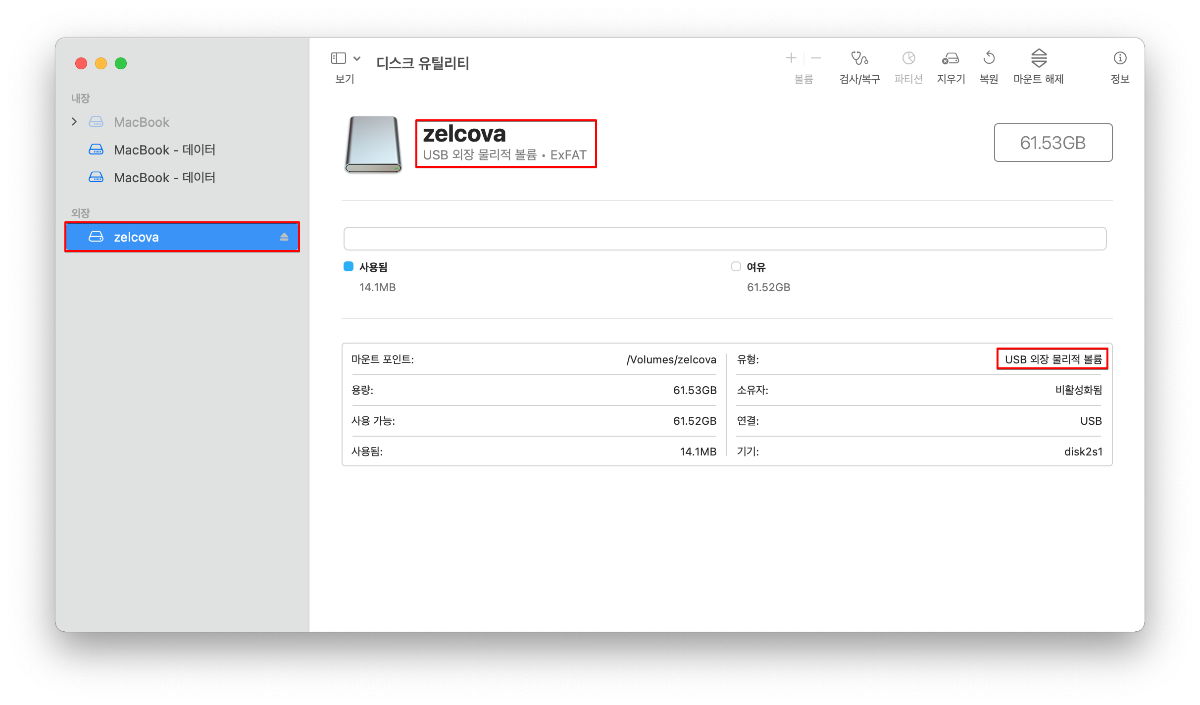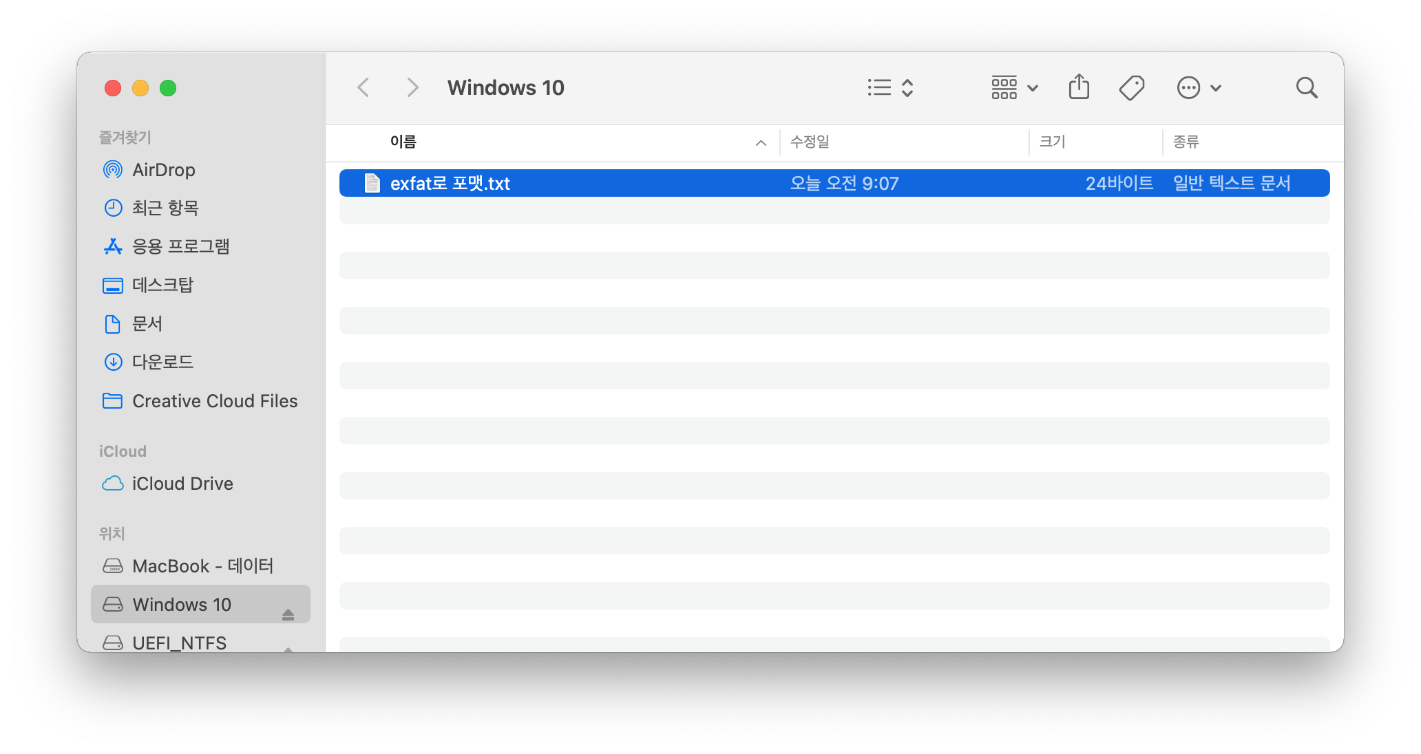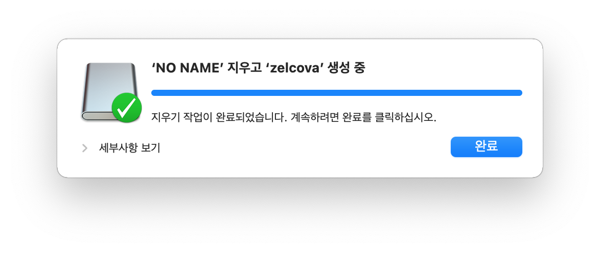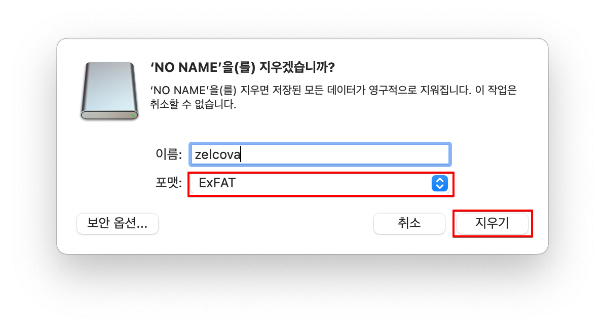 ▷ "exFAT"로 포맷이 완료되면 아래와 같이 exFAT로 포맷이 된 것을 확인할 수 있습니다.